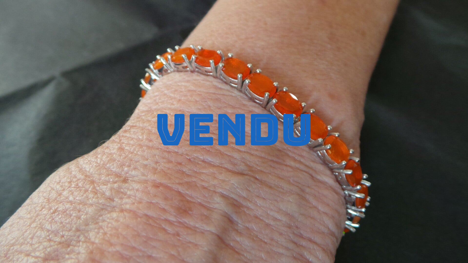Beau bracelet en Opales du Mexique, dites « de feu » sertis sur argent 925.(poinçon). Fermoir de type clip à deux 8 de sécurité. Longueur ouvert 19 cm - Poids 16,30 gr