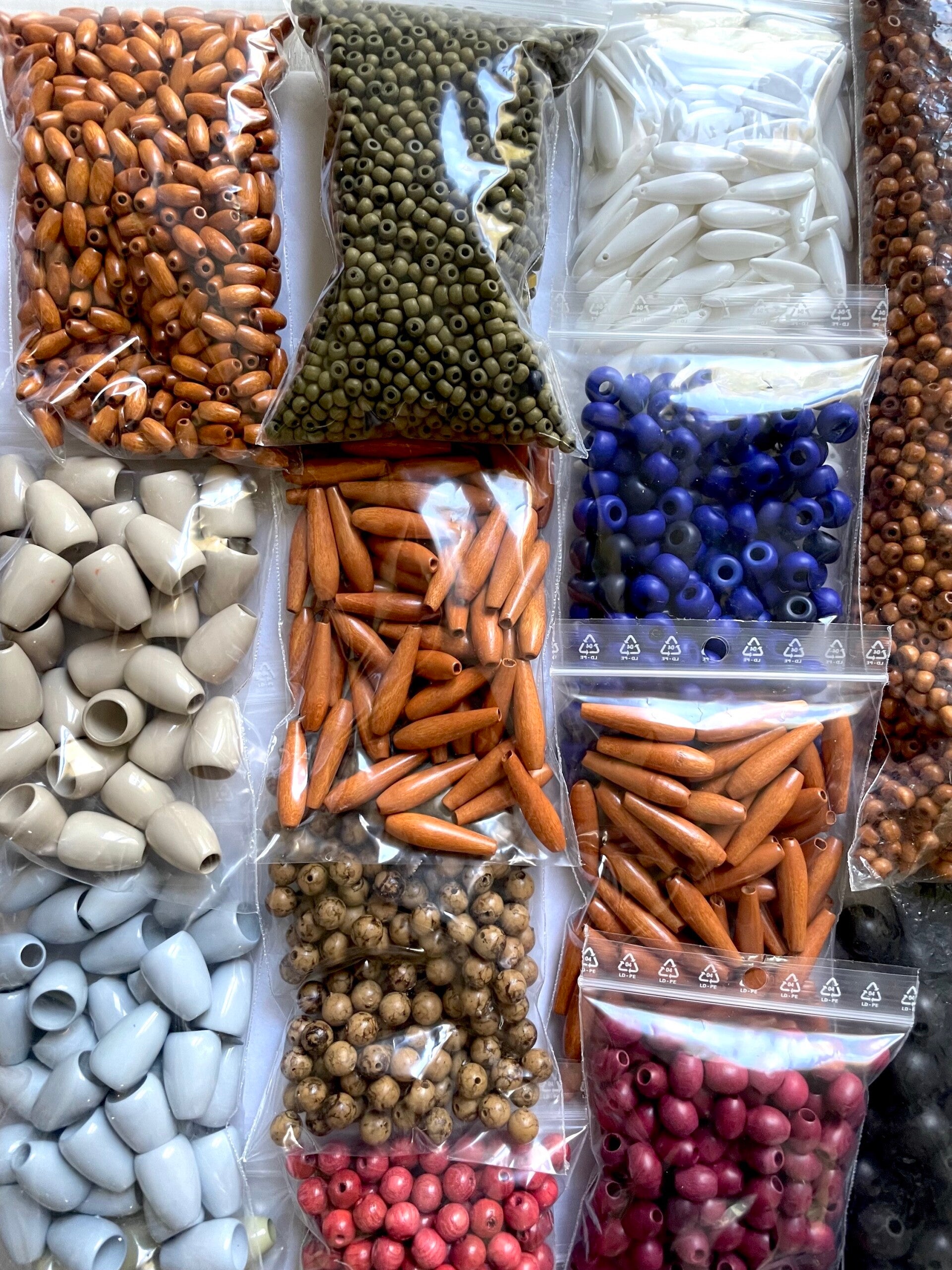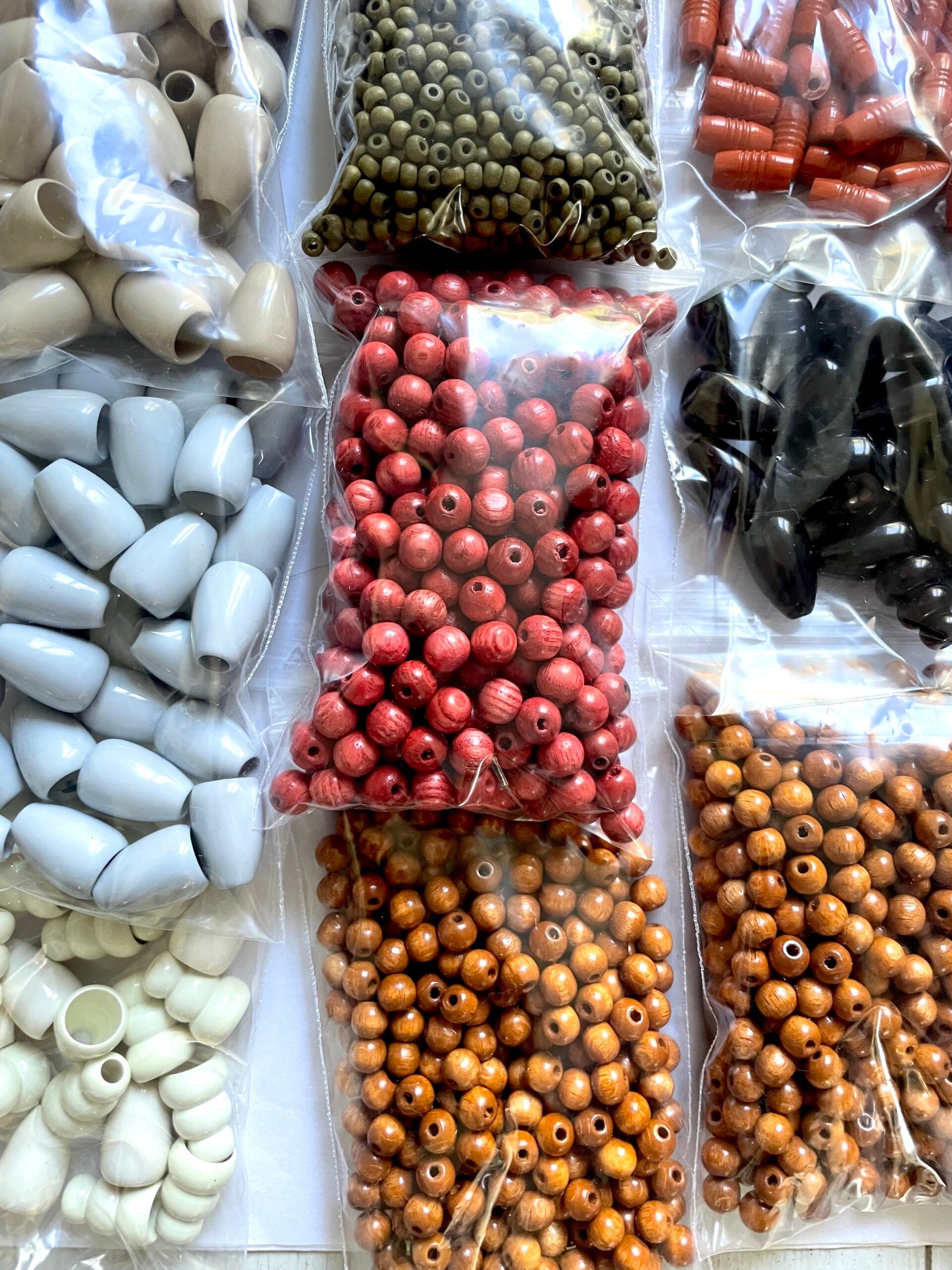 Lot de perles de bois colorées de la Maison Barlan à Paris