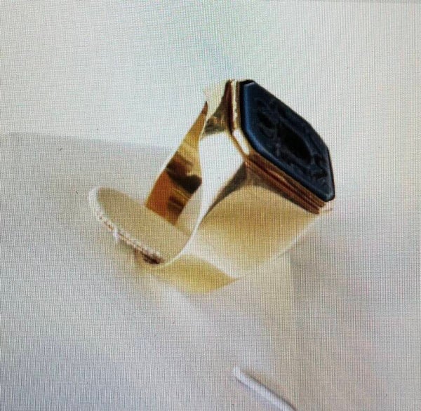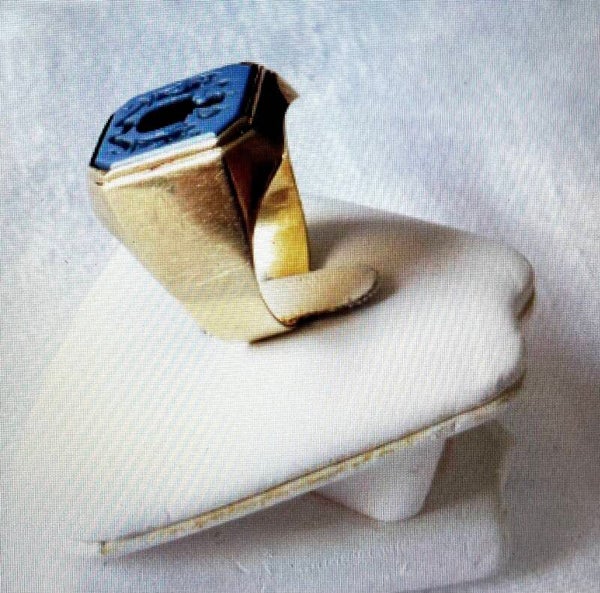 Chaton orné d'une intaille sur agate bleue Niccolo représentant les Armoiries de l'Ordre.