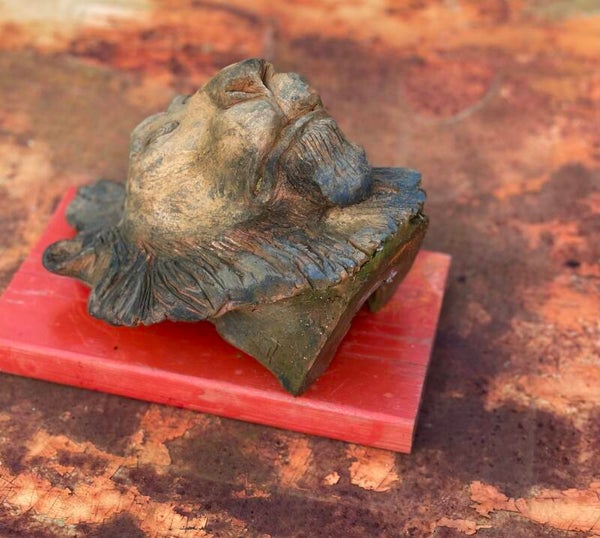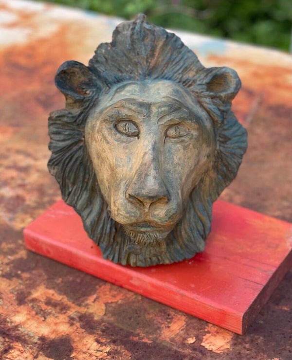TETE DE LION TERRE CUITE PATINE BRONZE