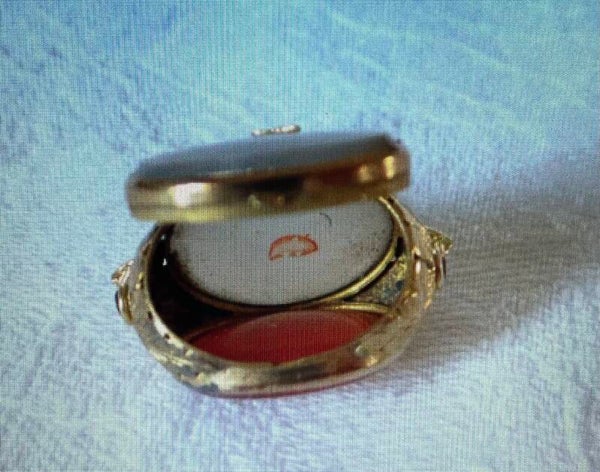 Pendant with secret in 18 K gold and 3 cabochons of agates of color , white milky , brown orange and grey smoky , of which 1 cabochon opening a perfect secret location to contain a precious memory or other, late XIX°.