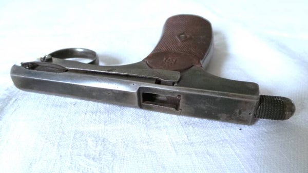Canon rayé qui est relié à la détente, magasin dans la poignée peut contenir jusqu'a 10 cartouches . Il contient la planche élévatrice et son ressort.
