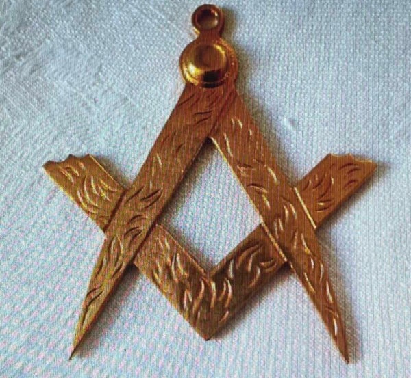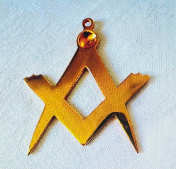 Bijou Maçonnqiue en laiton doré , équerre & compas .