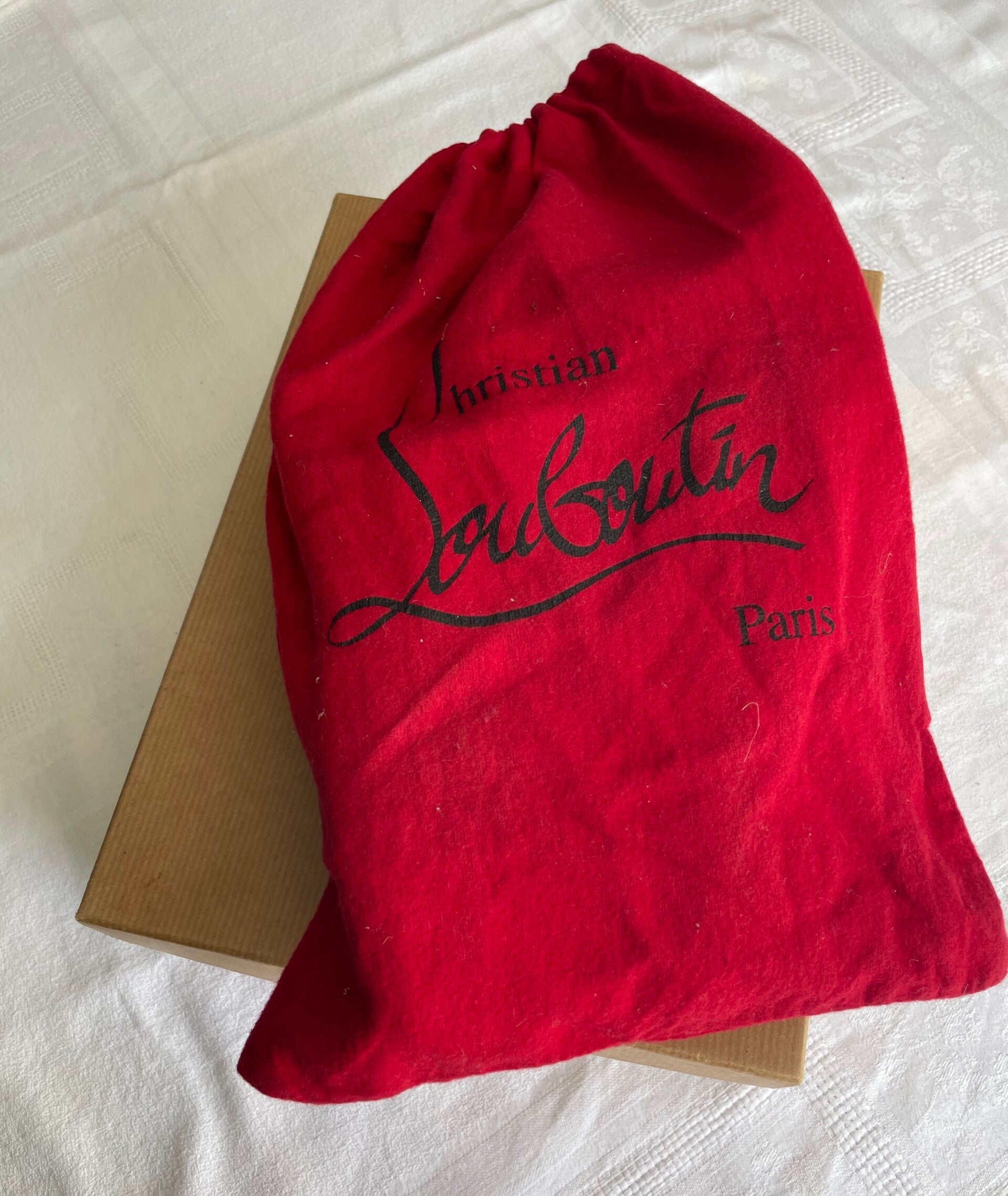 Ces confortables escarpins à petits talons de 5 cm de la célèbre marque à la semelle rouge, seront du plus bel effet aux pieds d'une élégante. En taille 38, le modèle intitulé "PYRAMIDAME" sera livré dans sa boite d'origine et avec sa pochette "dust bag" rouge écritures noires de la marque Louboutin, ainsi qu'un bristol de la marque jointe dans la boite. Ces escarpins ont été portés mais bien conservés. Talon de 5 cm permettant de trotter en toutes occasions. La première de propreté est estampillée Louboutin, ainsi que la semelle rouge iconique. Bel état d'origine et d'usage, en l'état, voir les détails sur les photos.