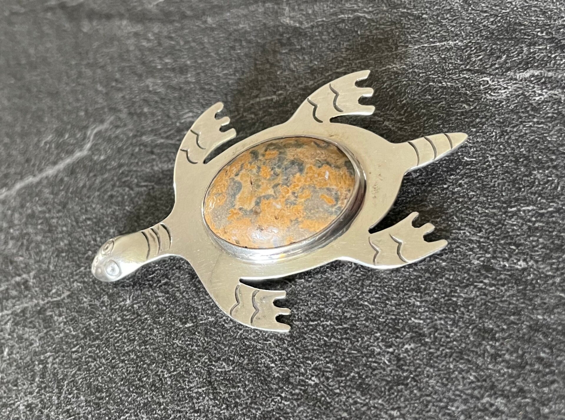 BROCHE TORTUE ARGENT 925 ET CALCEDOINE