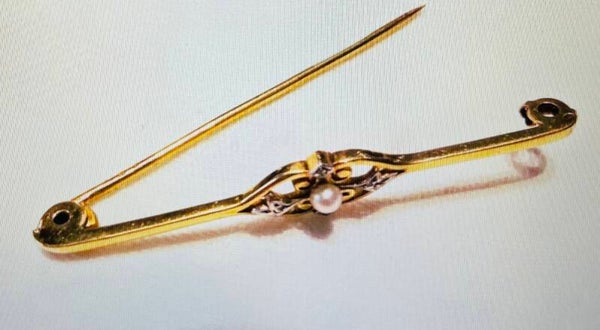 BROCHE BARRETTE EN OR 18 K PERLE ET PETIS DIAMANTS TAILLE ANCIENNE - CIRCA 1900