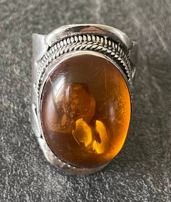 BAGUE EN ARGENT ET AMBRE - TRAVAIL ARTISANAL