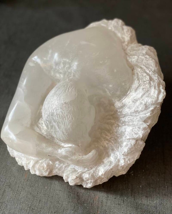 "L'homme dans la vague", sujet sculpté en albatre blanche, du sculteur et peintre Rétais Philippe Darondeau XX°.