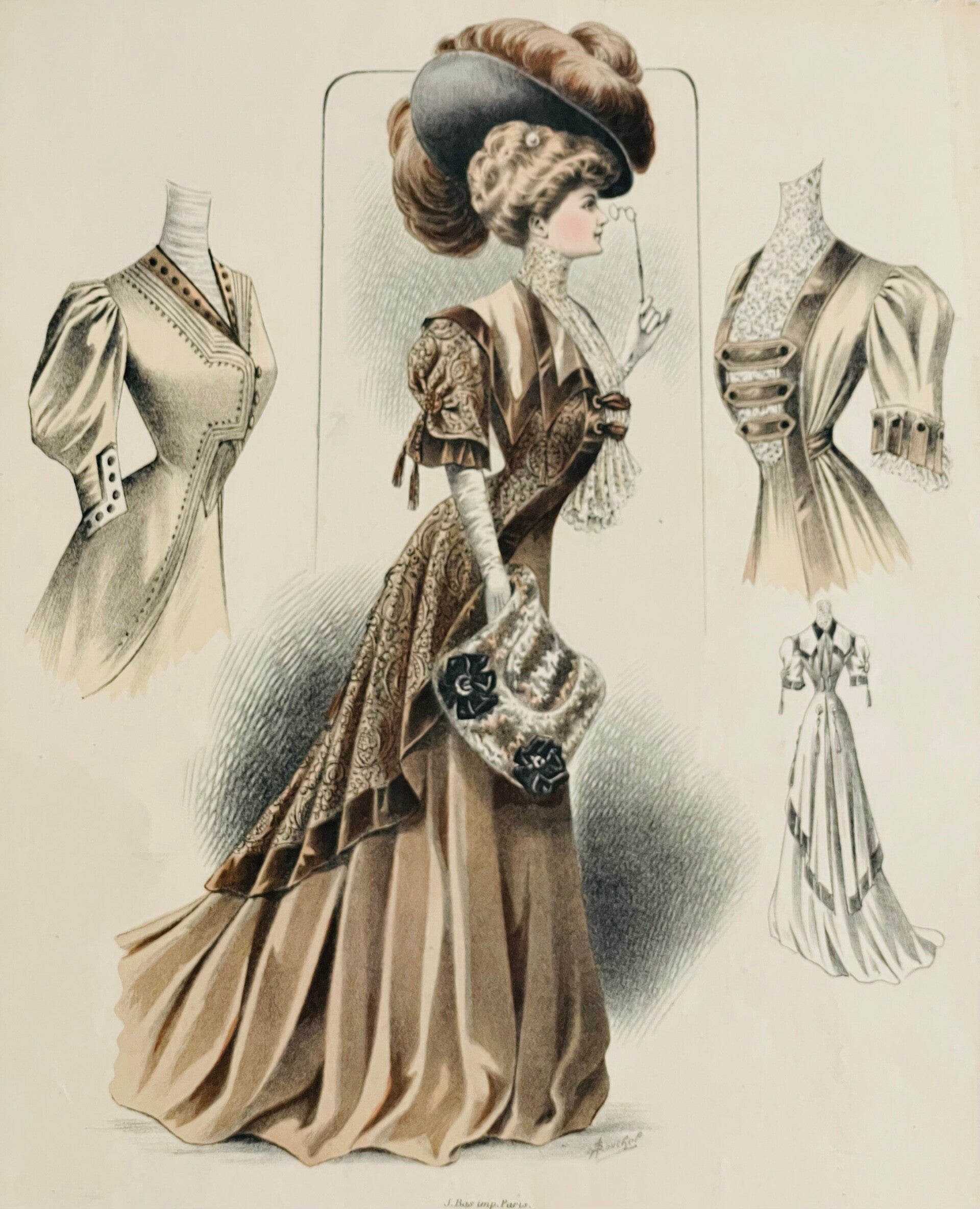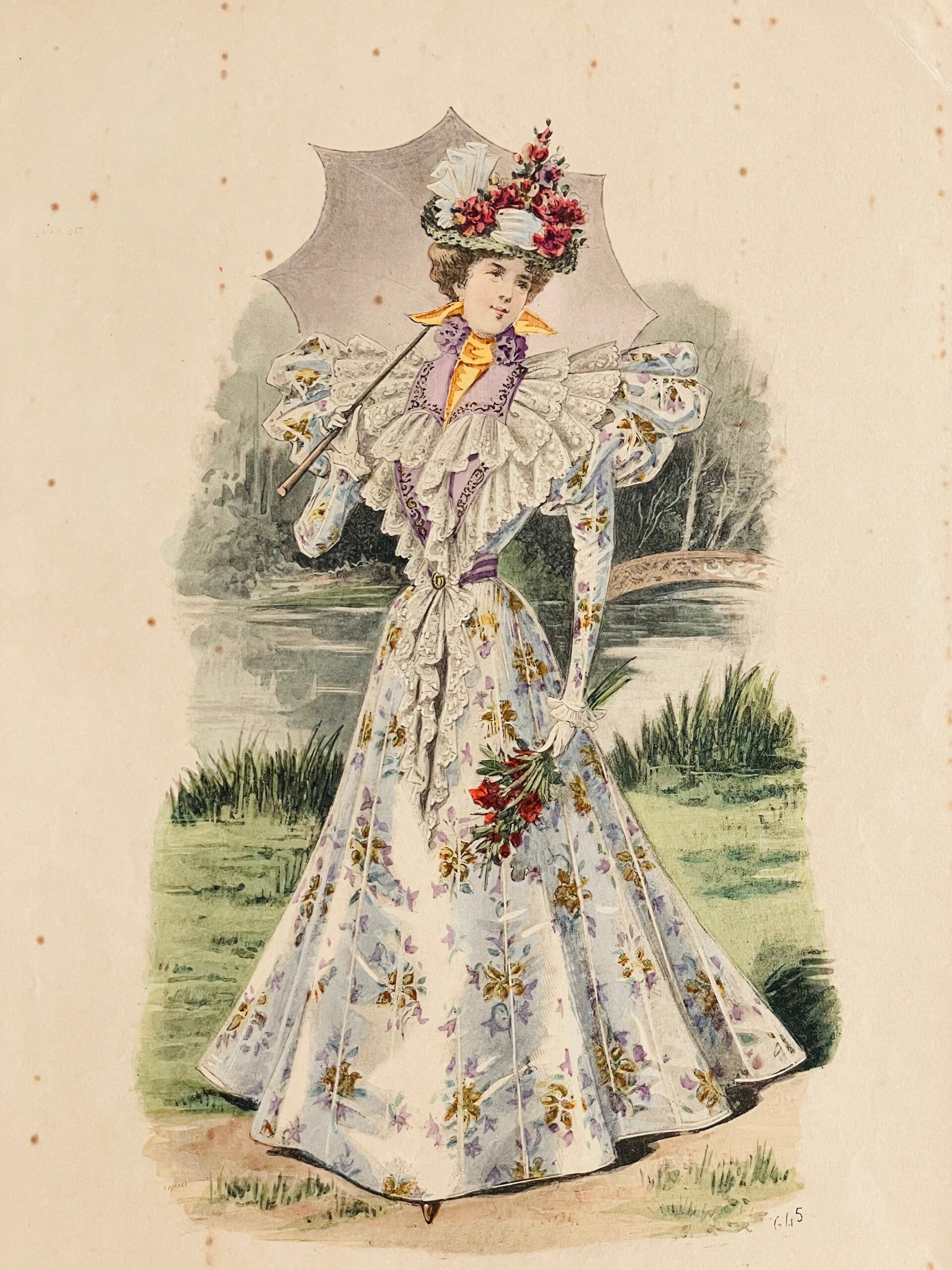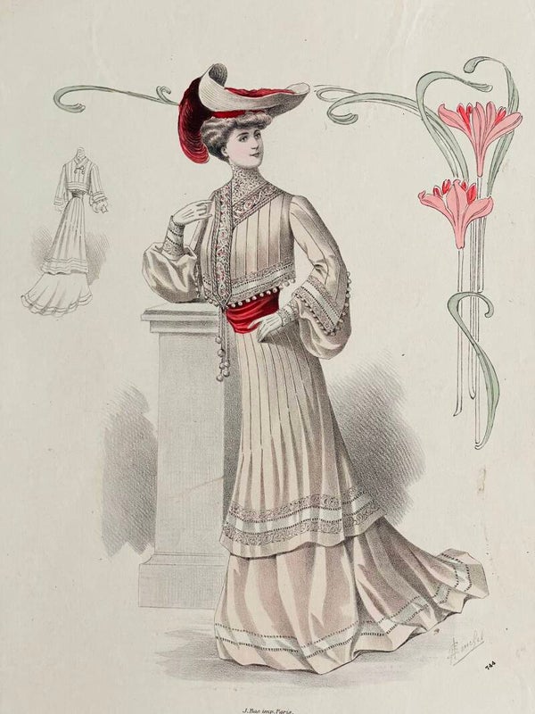 Very beautiful lot of 10 boards "reproduction forbidden" of models of dresses from elegant Parisiennes in fashion from 1881 to 1909, signed and numbered by A - SOUCHEL at the bottom of the dresses. Ideal for making frames from them