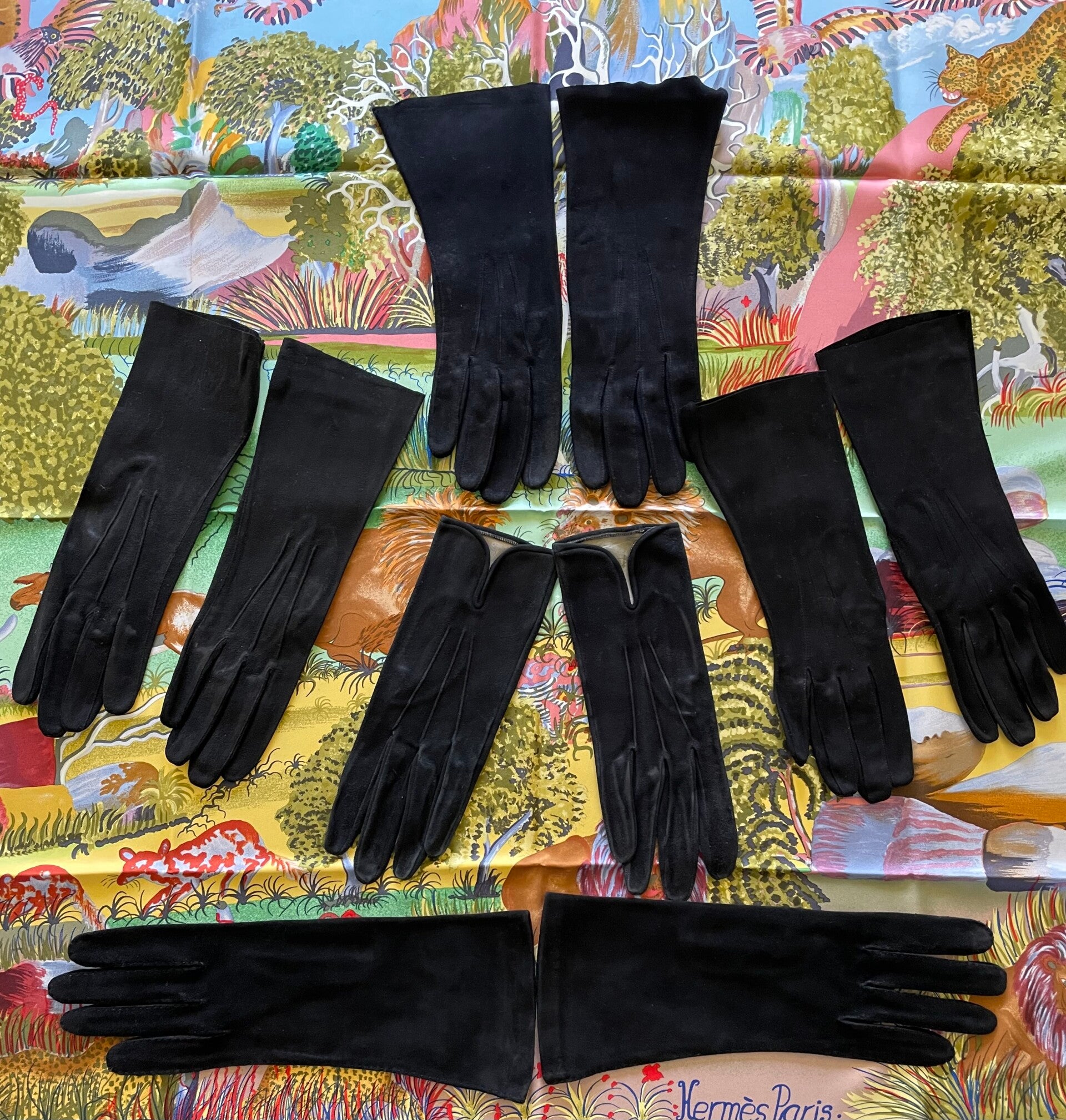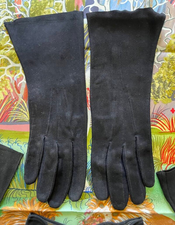 LOT 5 PAIRES DE GANTS VELOURS DE VEAU NOIR CIRCA 1940